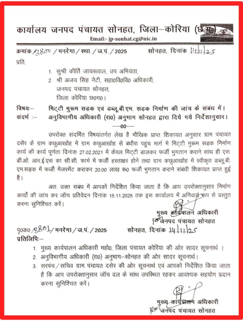 जांच आदेश जनपद सोनहत द्वारा जारी